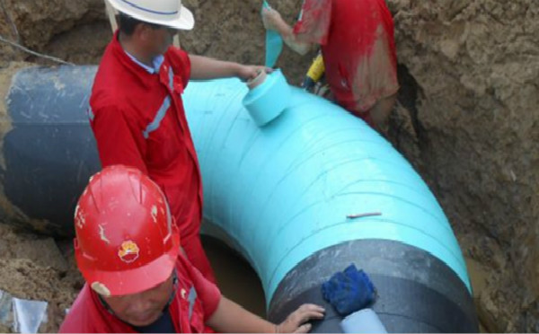 3)選用與管徑或管件相匹配的粘彈體膠帶寬度,覆蓋搭接不小于帶寬的10%,覆平、貼緊,無褶皺。