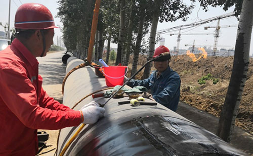 2、用涂抹墊將已準(zhǔn)備好的無溶劑環(huán)氧底漆均勻涂刷在作業(yè)面,達(dá)到無漏涂,待表干后進(jìn)行安裝壓敏膠型熱收縮帶。